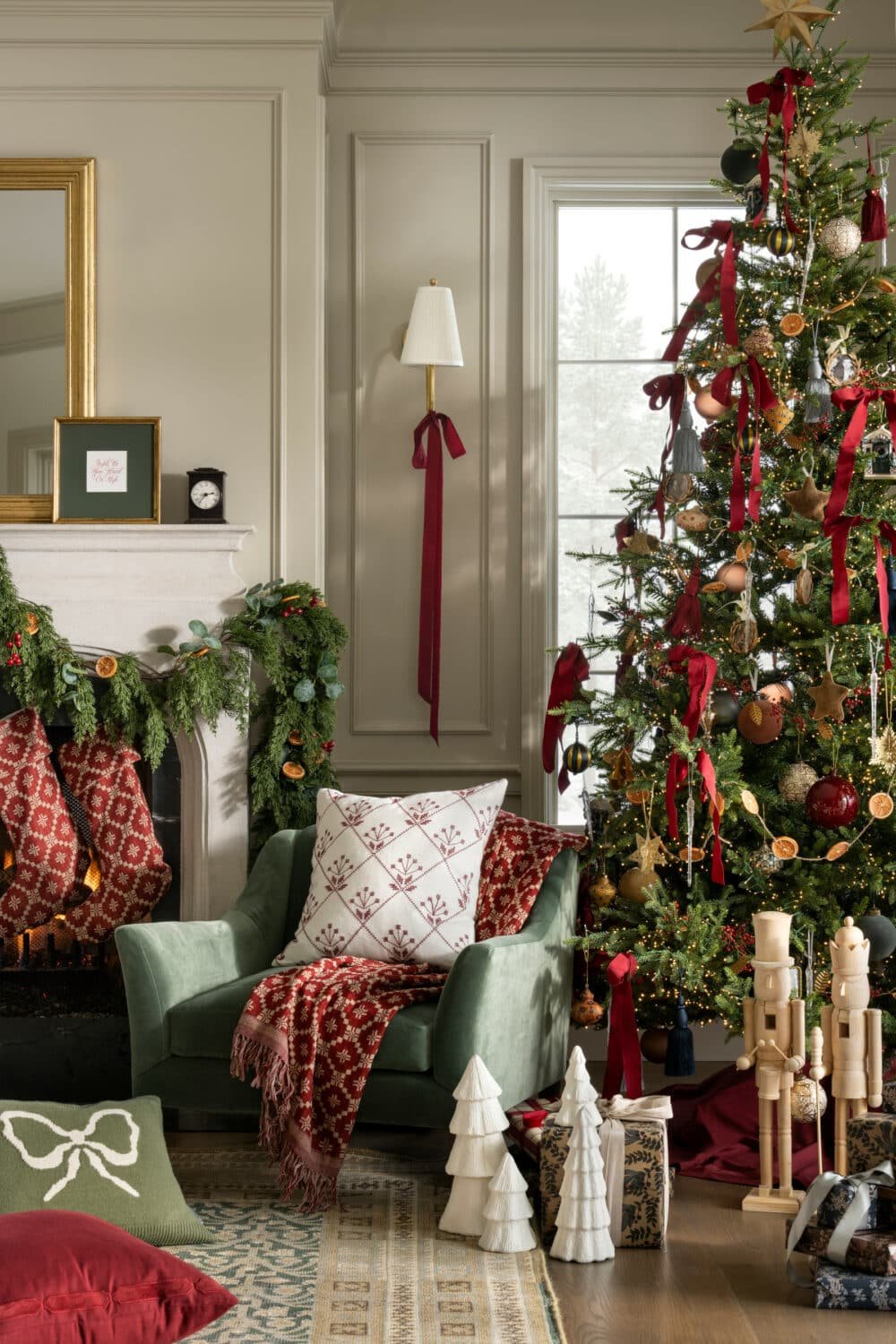 More is more for Christmas 2025. Designers are embracing maximalism in both home designs and holiday decor. To get this festive feeling in your own home, consider oversized ornaments, voluminous garlands and wreaths, and dramatic tree toppers (a giant bow would do nicely!) The idea is to create impact with fewer, more intentional pieces that make a statement.